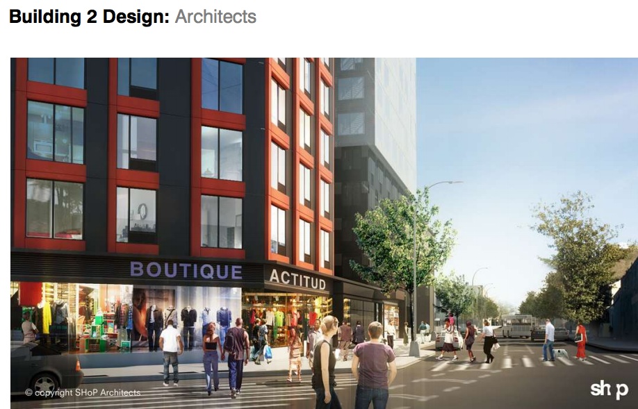 “All financing commitments are in place with HDC [New York City Housing Development Corporation] and Bank of New York Mellon to permit construction,” she added. (Actually, NYC HDC, which did have its one required hearing this past July, told me yesterday that its board next week will be voting approval of tax-exempt financing of up to $100 million.)