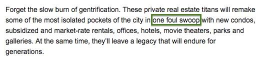 Well, it's hard to say that Atlantic Yards/Pacific Park, which even now will take a decade, represents "one fell swoop." (Doesn't "foul" seem like a curious slip of the pen?)