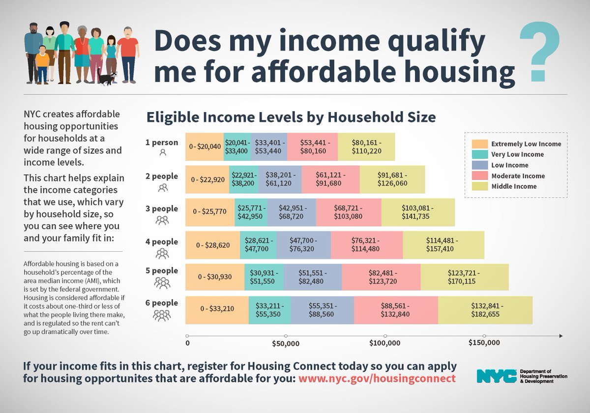 From the New York City Department of Housing Preservation and Development, "Want to know if your income qualifies you for #affordablehousing? Check out our new income infographic to see where you and your family fit in."