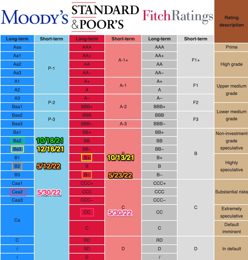 May 30, 2022, Moody's: three-notch drop