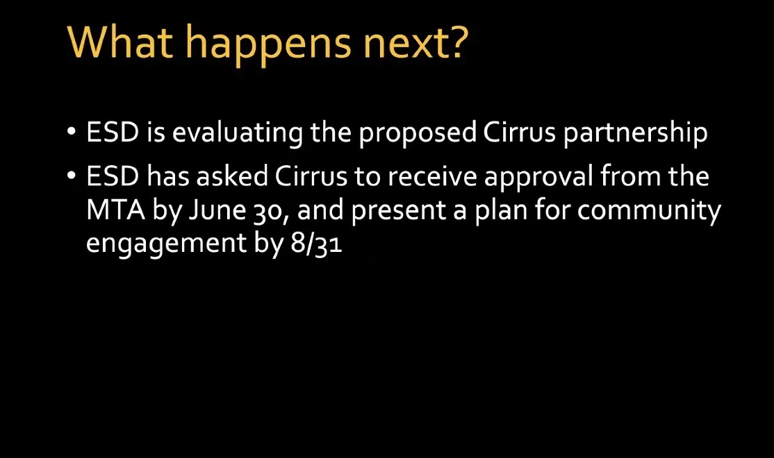 ESD said that involves “approval and transfer of development rights to a new team by August” and “a robust community engagement plan and project framework to be guided by a community engagement process by December.”